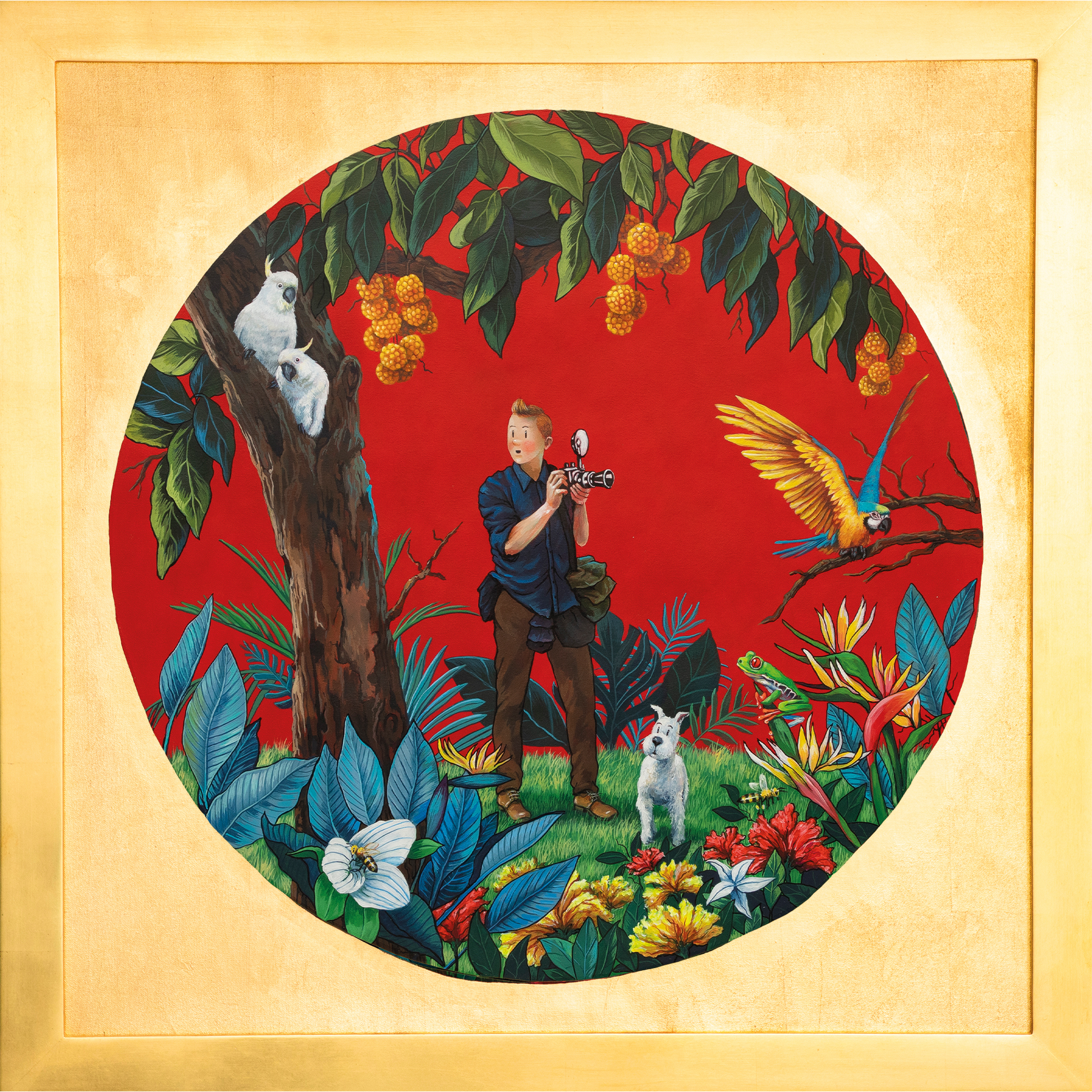 Cuadro, lienzografía y laminilla de oro.
